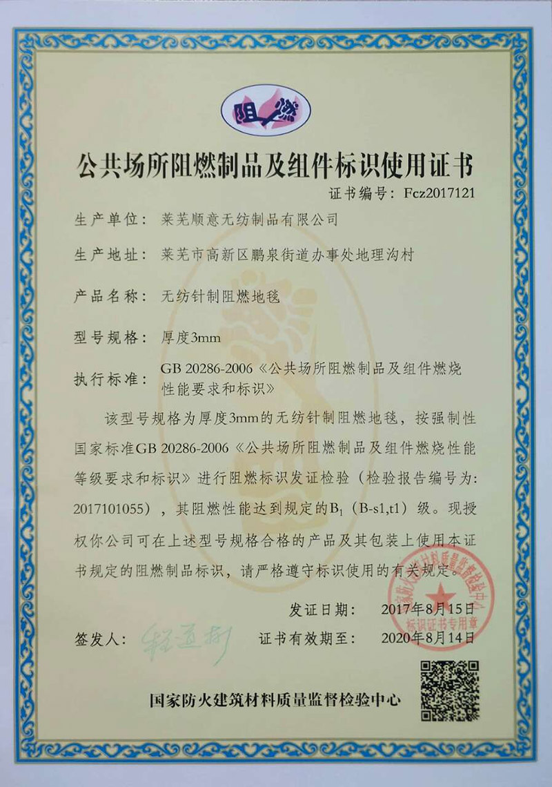 阻燃地毯檢測合格